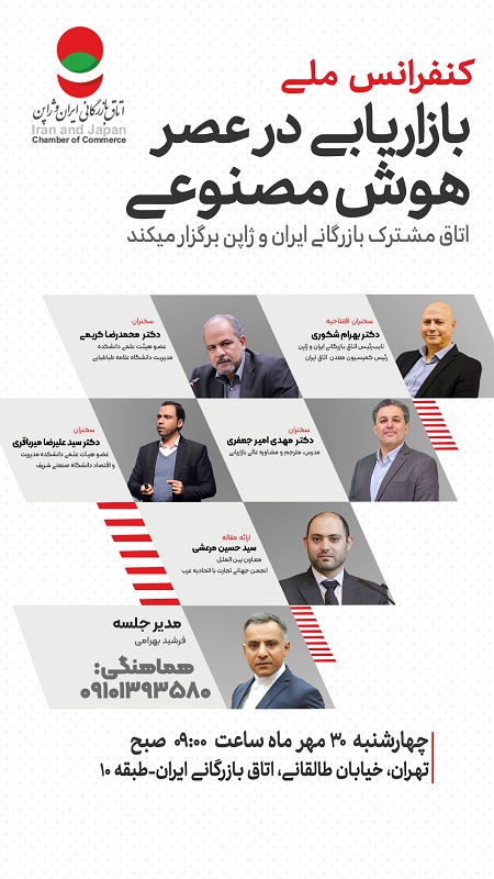 به همت اتاق مشترک ایران و ژاپن کنفرانس ملی «بازاریابی در عصر هوش مصنوعی» چهارشنبه 30 مهر در طبقه دهم ساختمان اصلی اتاق ایران برگزار خواهد شد.