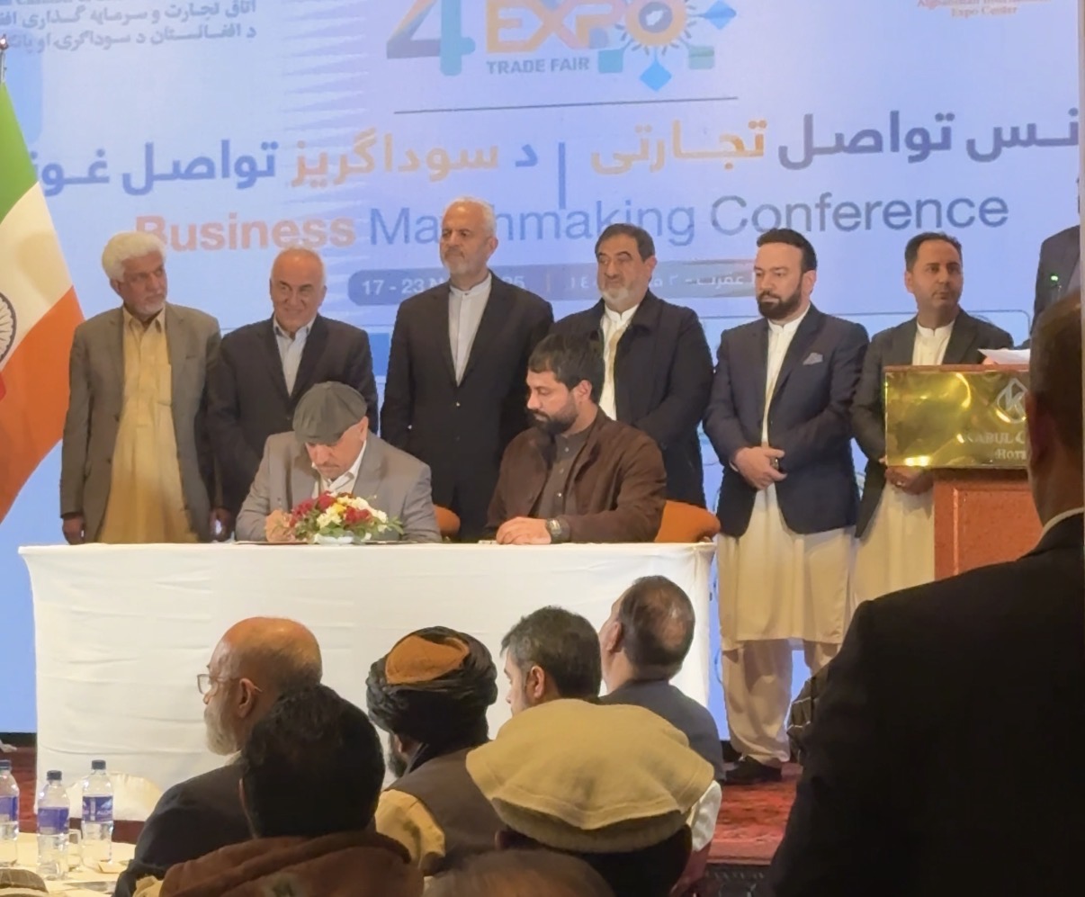 در همایش تجاری که با حضور هیاتهایی از کشورهای ترکمنستان، ازبکستان، هند و ایران در دومین روز از برگزاری نمایشگاه بینالمللی امام ابوحنیفه افغانستان برگزار شد، قدیر قیافه نایبرئیس اتاق بازرگانی، صنایع، معادن و کشاورزی ایران و کریم هاشمی رئیس اتاق تجارت و سرمایهگذاری افغانستان تفاهمنامه همکاری امضا کردند.